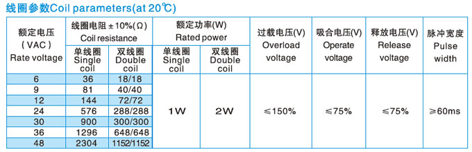 觸點(diǎn)與線圈間between contacts&coil:AC 4000VAC,50/60Hz 1min